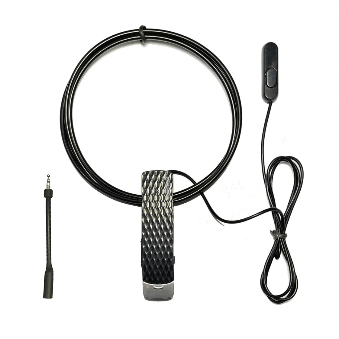 Комплект состоит из магнитного микронаушника (2 мм) и Bluetooth гарнитуры с выведенным на проводе микрофоном. Комплект подключается к любому мобильному телефону с поддержкой технологии блютуз. После подключения гарнитура одевается на шею или на плечо. Телефон при этом можно отдалить в радиусе до 10 метров, то есть его можно спрятать в сумке, карманах одежды и т.д.